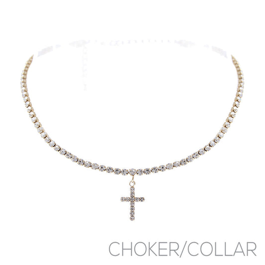 Rhinestone Cross Choker Necklace