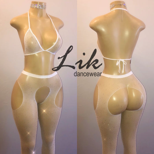 Mars Two Piece Long Sleeve Set w/ Rhinestone Thong