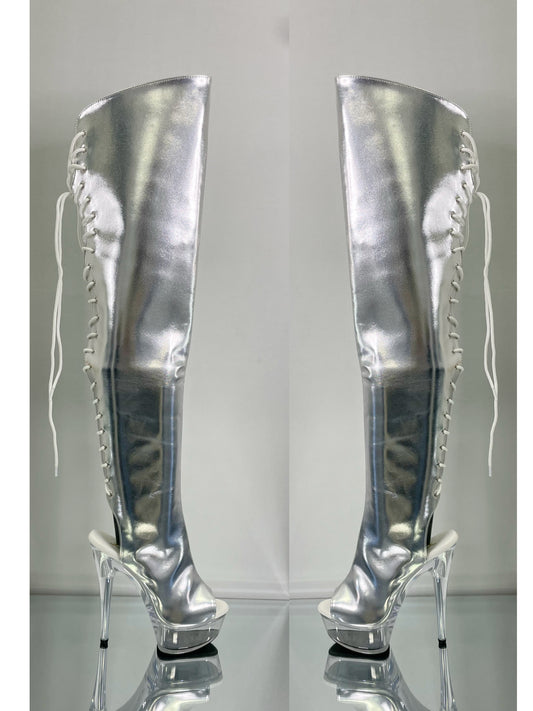 Lik Thigh High Rhinestone Fringe Metallic Boot