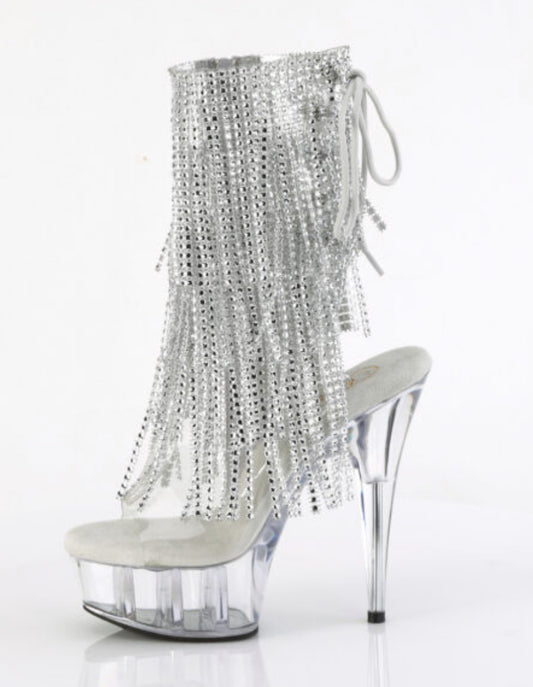 Lik Thigh High Rhinestone Fringe Metallic Boot