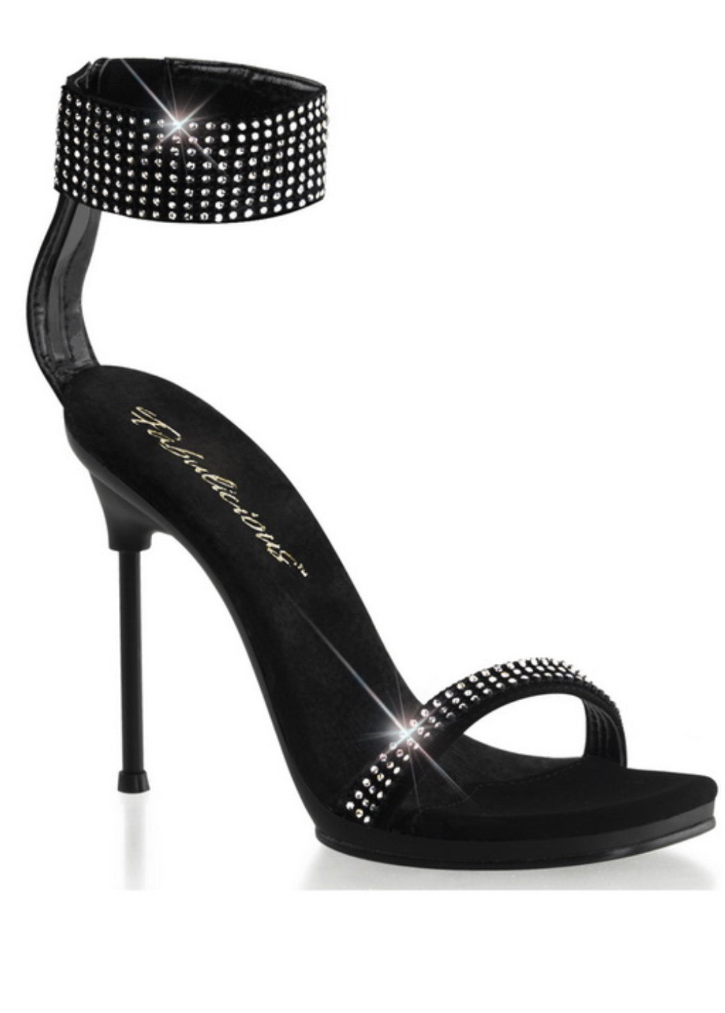 This shoe has rhinestones on the straps and ankle cuff that give expensive baddie vibes.