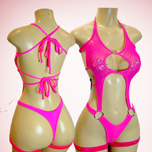 Leopard Mesh Back Lace-Up Romper for Exotic Dance