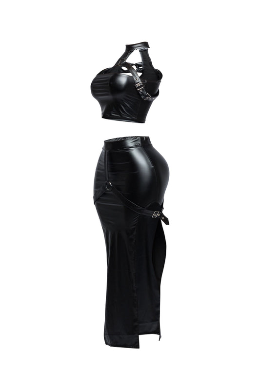 Belted Choker Halter Top & Maxi Skirt Set
