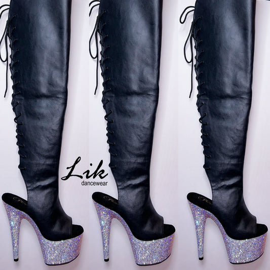 BEJ3019DM-7/BPU/SMRS Rhinestone heel 7 inch thigh high boot