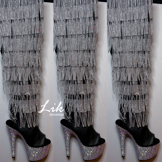 BEJ3019RSF-7/BPU/SRS Rhinestone fringe shingle thigh high boots
