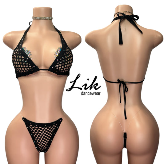 Queen 3 strap thong and bikini set with rhinestone