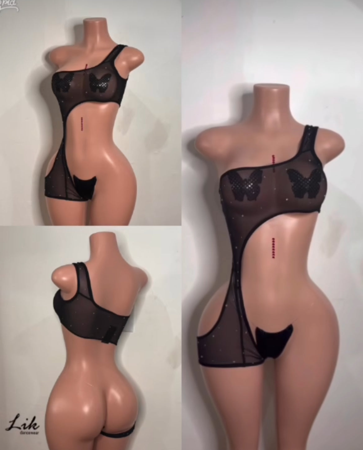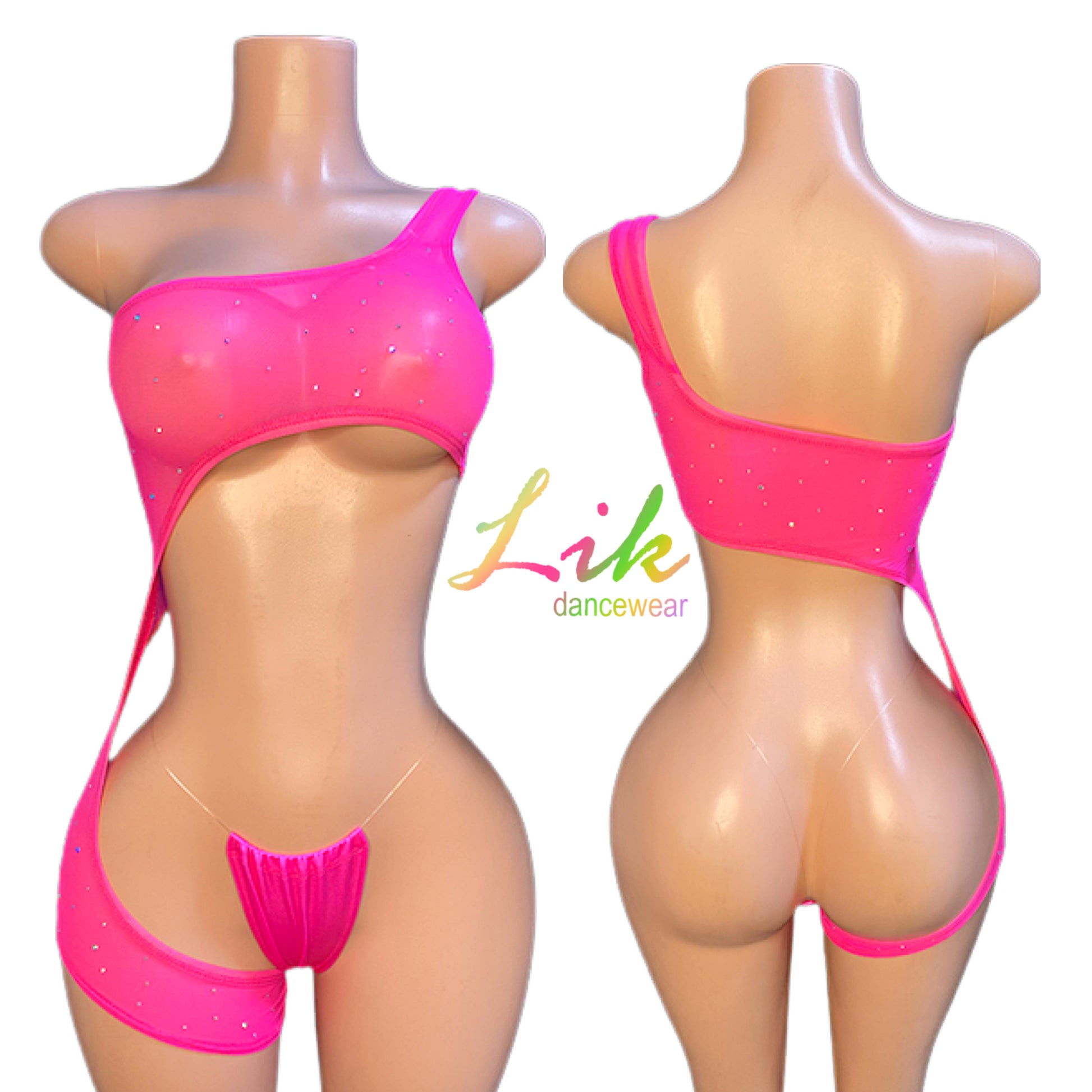 Feel like a million bucks in our Centerfold one leg and one-shoulder cut-out one piece. Paired with an invisible string thong. Made of high quality 4 way stretch fabric.