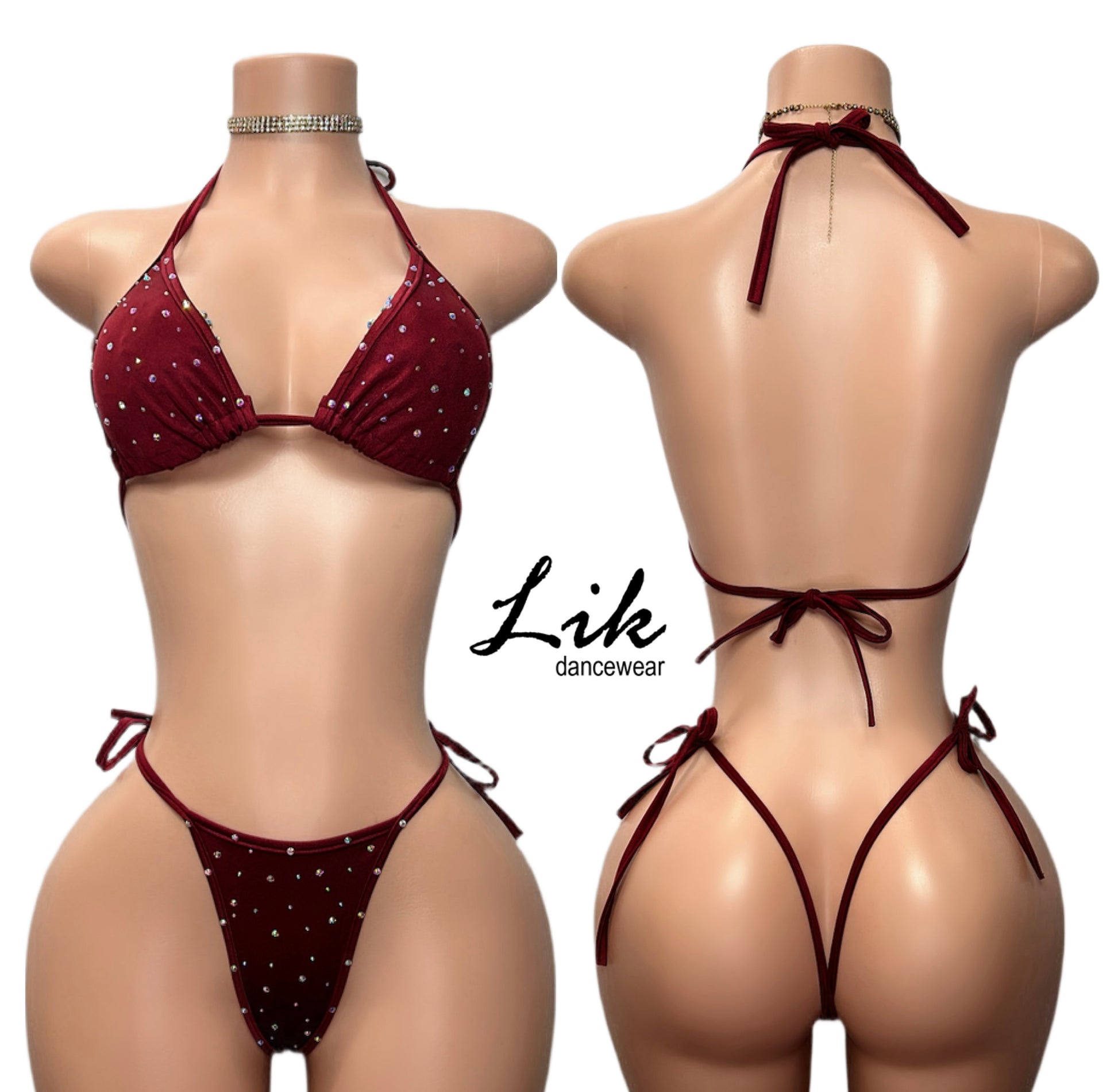 Become the ultimate showstopper with Dynasty, our heavily rhinestone bikini set. The adjustable strings for top and bottom allow for a perfect fit, while the poly-spandex fabric ensures maximum comfort. Perfect for exotic dancers, this standard bikini set fits beautifully on those weighing between 120-170 lbs.