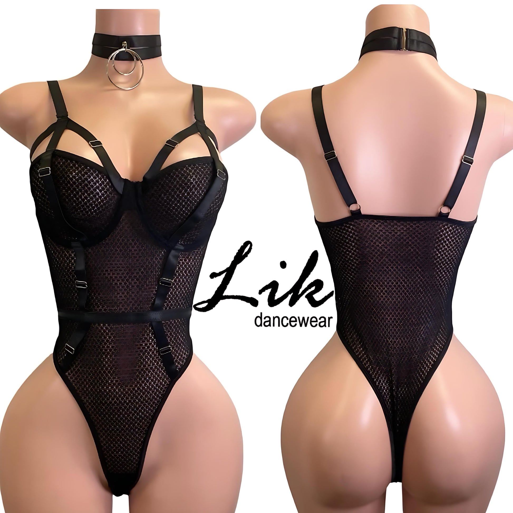 Fishnet One piece featuring straps and ring choker.
