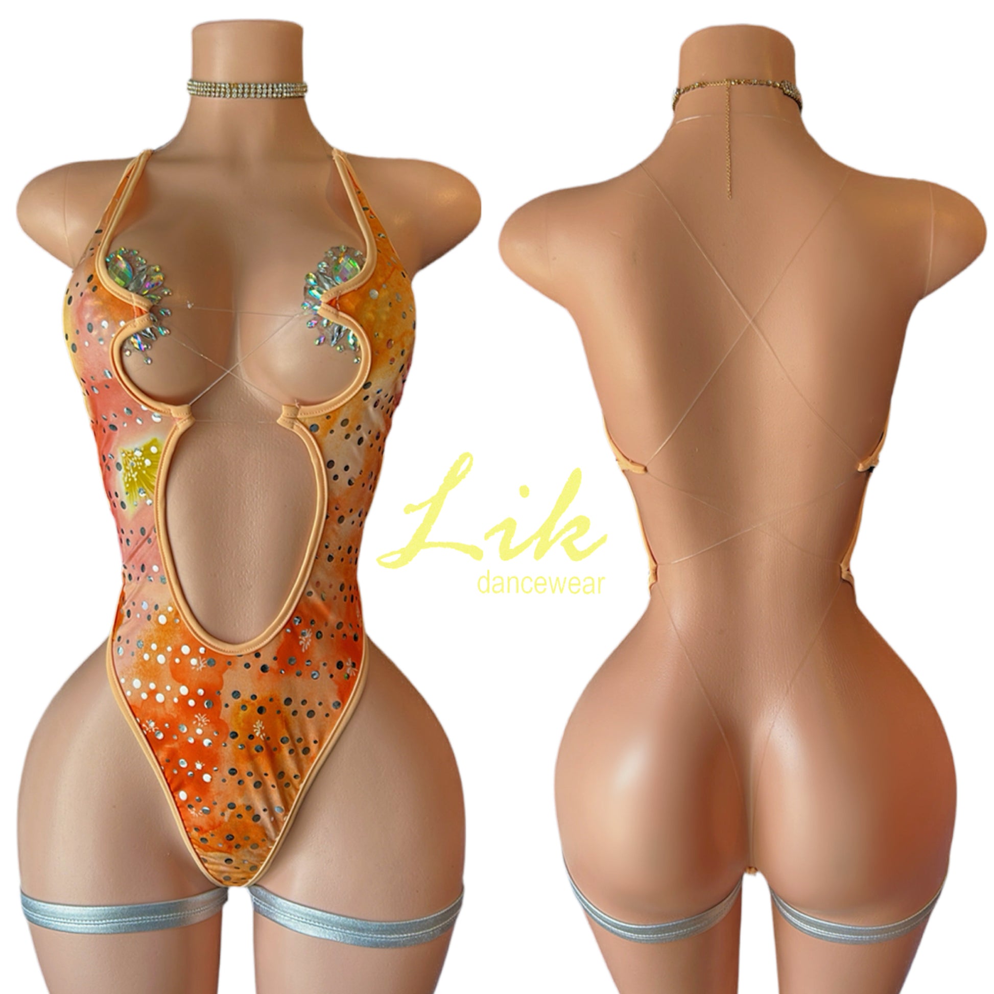 Introducing Morrigan - the ultimate one piece for seduction. Featuring an adjustable lace-up backless and front with a tantalizing keyhole design, this ultra sexy outfit is perfect for strippers. Adorned with sparkling rhinestones, it fits best for those weighing between 120-170 LBS. Unleash your inner temptress with Morrigan.