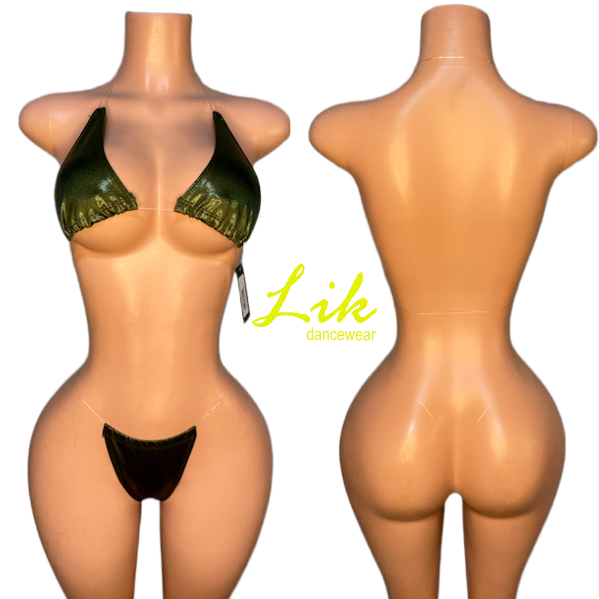 No need for rhinestones with this collection of fabrics Invisible string bikini and thong made of an assortment of fabulous fabrics such as iridescent and mini dot. . Barley there so we call her naked.