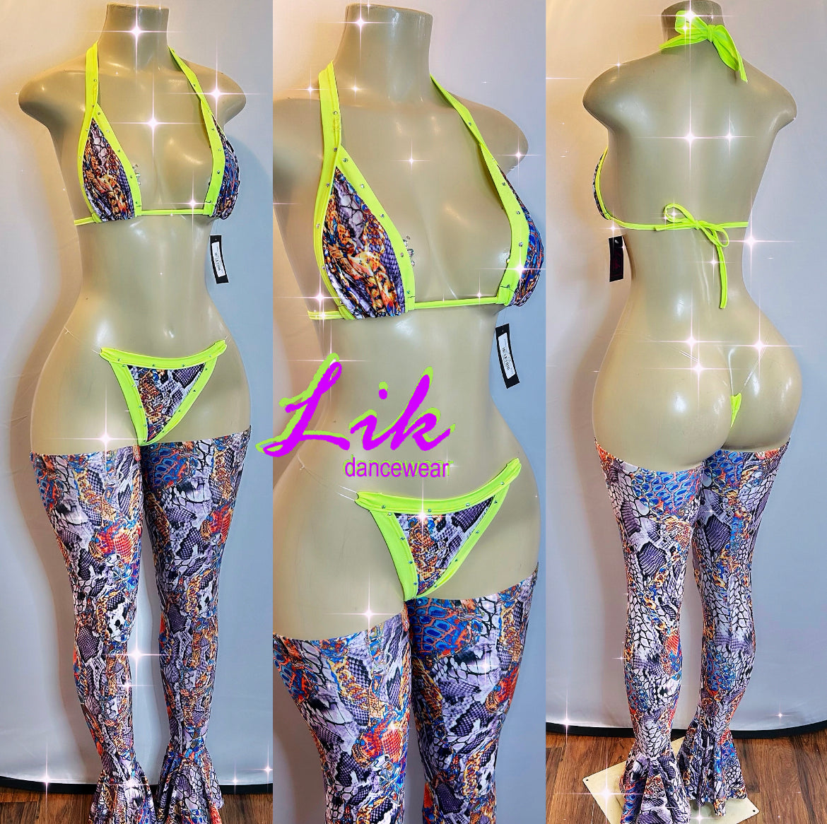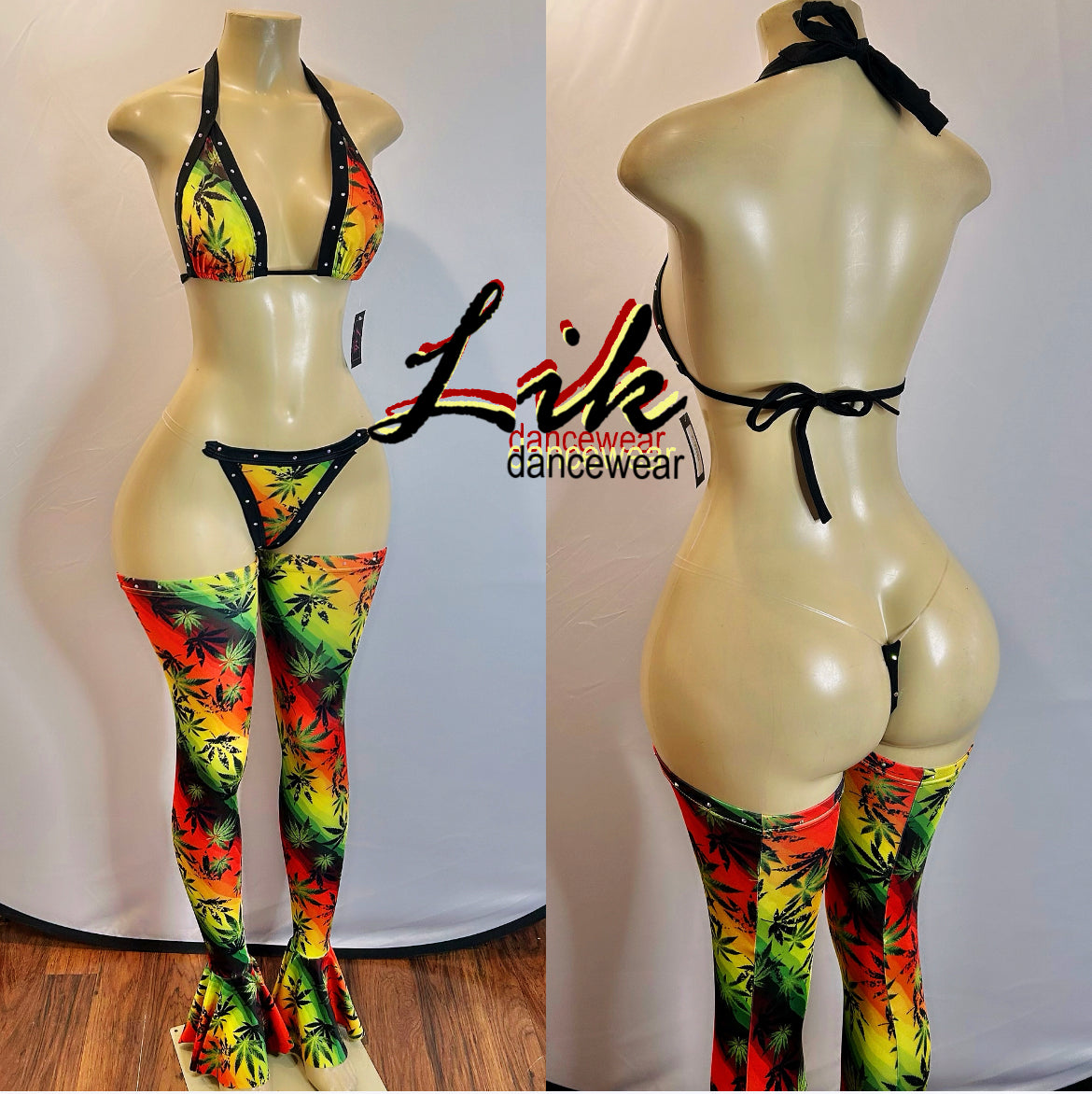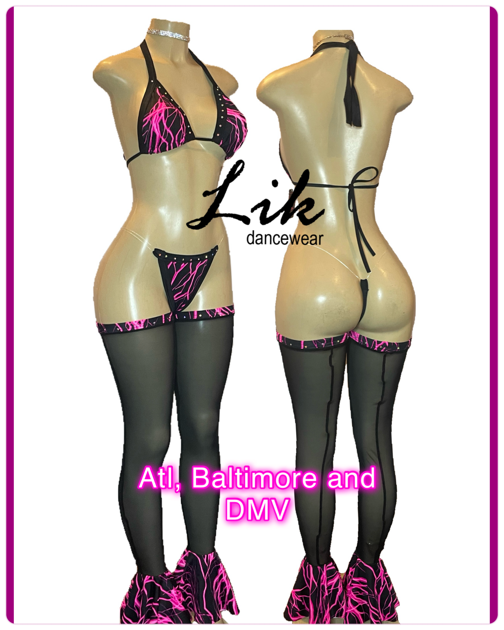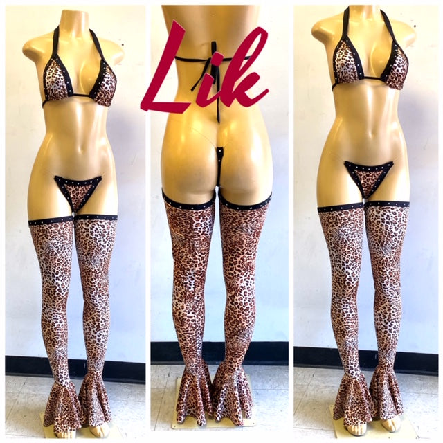 A three piece set with invisible thong and leg/shoe cover. Nylon spandex fabric